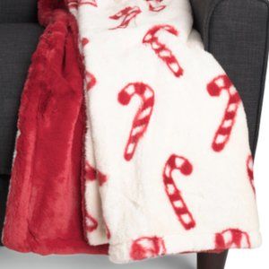 Bella Lux Candy Cane Faux Fur Throw Blanket Red White Christmas Holiday Decor