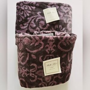 Bella Lux Fine Linen 100% cotton Floral Paisley Eggplant Brown Bath towels × 2