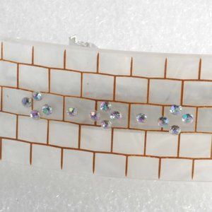 Bella Luxe Pearlized Plastic Hair Barrette Rectangle Rhinestone New on Card
