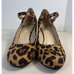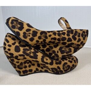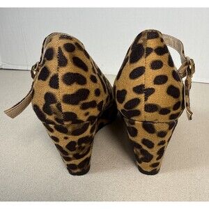 Bella Marie Faux Suede Mary Jane Wedge Leopard Print 3" Heel Size Women's 8.5
