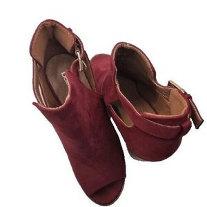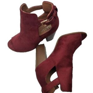 Bella Marie Women 9 Wine Peep Toe Ankle Buckle Strap Suede Heels Western Casual