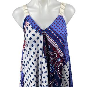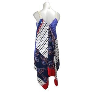 Bella Moda Multicolor Paisley Sleveless V-neck Asymmetric Midi A-line Dress Sz S