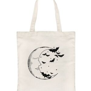 Featuring a dreamy crescent moon and fluttering bats, this durable cotton canvas tote is perfect for gothic goddesses, witchy souls, and eco-conscious fashion lovers. Lightweight, reusable, and spacious enough for books, groceries, or everyday essentials.