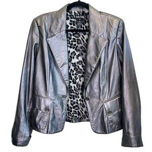 🖤 Bella Pelle Metallic Silver Leather Blazer Jacket | Size M | Made in USA