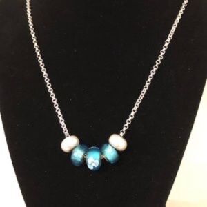 Silver in cupcake, white enamel and crystals, drops blue crystals.