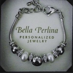 Bella Perlina Bracelet new in box. Never been worn. I believe this bracelet is stainless steel, but it may be Sterling silver. Comes with all charms pictured and can fit new Pandora still charms. The main/middle charms reads "Live Love Laugh Dream"