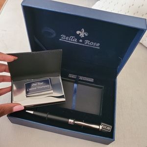 Business card holder & pen in case.