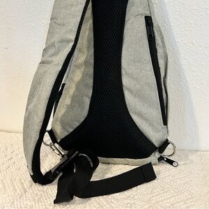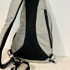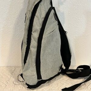 This modern backpack combines a sleek, minimalist design with a durable canvas material, making it perfect for daily use. The gray and black color scheme adds a contemporary touch, while the adjustable shoulder strap ensures comfort.