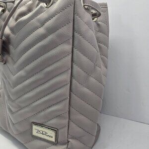 Bella Russo Quilted Shoulder Bag โ Light Gray Drawstring Tote โ Stylish & Spacio