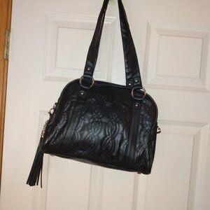 Bella Russo: Quilted black bag double strap w/removable key ring. Extra strap.