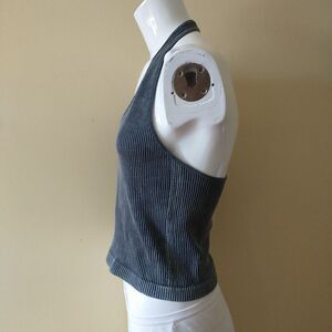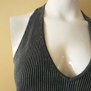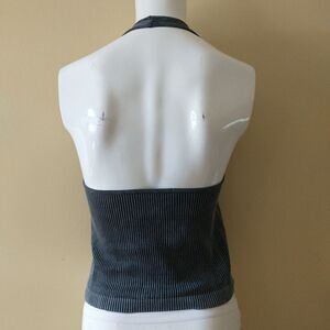 Bella Seamless Top Womens L Gray Ribbed Halter Sleeveless StretchGrunge Goth Y2K