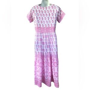 Bella Tu Nikki Pink Purple Hand Block Printed Floral Maxi Dress