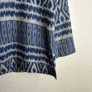 Elevate your wardrobe with this stunning Bella Tu tunic top in a beautiful blue-gray hue. The long sleeve top features a V-neckline and a casual sleeve type, making it perfect for both travel and casual occasions. The abstract pattern and beaded accents add a touch of bohemian and Indian vibe to the relaxed fit, making it a must-have for any fashion-forward woman's collection.