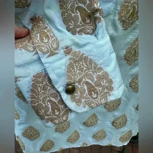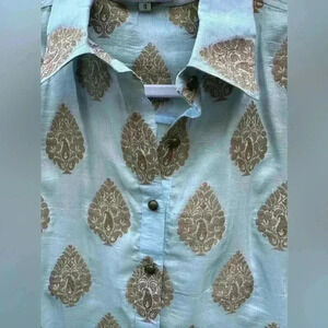 Bella Tu popover tunic Blue gold Small classy contemporary casual artsy