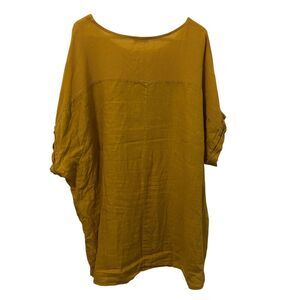Bella umbra Tunic Shirt Womens 3X Yellow Linen Cotton Made in Italy Oversized Top