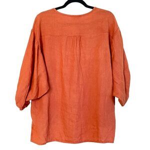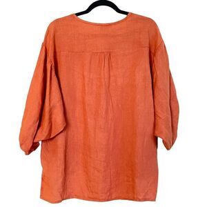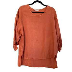 Bella Urbia Made In Italy 100% Linen Orange Oversized Tunic Blouse Sz M
