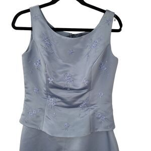 Bella Venus Dress 14 Blue Floral Wedding Satin Line Sleeveless Plus Size Beaded