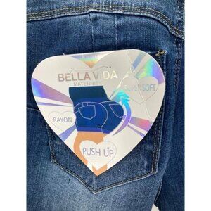 Women's size small maternity shorts from Bella Vida. The shorts are in solid blue medium wash denim. The shorts are cut off style, super soft, push up, stretch and are new with tags.