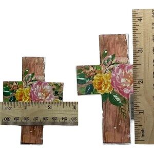 The cross is about 3.6 inches H X 2.6 inches wide. See pictures for addition details.