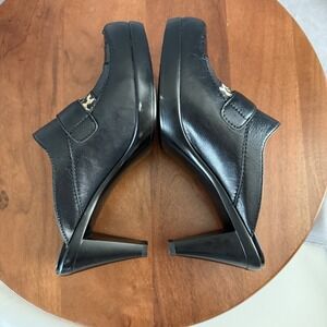 Bella Vita Black Leather Leopard Print Embossed Retro Mules Clogs Women Size 8W. Please note that the sizing does indicate 8W, but they don't seem very wide.