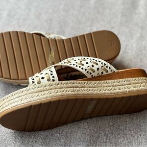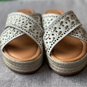 NWOB Bella Vita Made in Italy Women's Exa-Italy Wedge Sandal, White Leather, 8.5 Wide