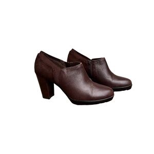 Bell Vita Dark Brown Leather ankle boots. Side zippers. Smooth leather on front and suede on back. Side 7.5