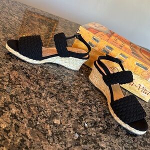 Bella Vita Mariela black suede espadrilles 2” wedge sandal NIB 6.5