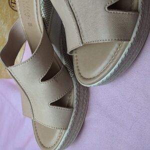 Bella Vita Italian leather neutral tan espadrille wedges