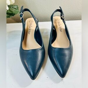 Bella Vita Sling Back Pump, Adustible Buckle, Color Navy Lea, Size 5.5