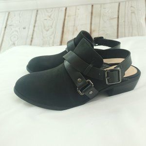 Bella Vita Womens Black Leather Round Toe Block Heel Slingback Sandals Size 6M