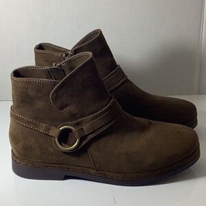 Trendy and comfortable, the Izzy by Bella Vita is the perfect bootie for all your fall activities. The versatile upper offers a contemporary overlay detail with ring ornamentation that gives all your casual outfits a fashion pop. The padded heel to toe comfort is supported by a flexible outsole, this style can be paired with all your favorite jeans and sweaters. Inside zipper for easy on and off. 0.75" flat heel