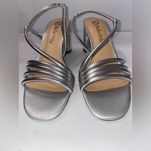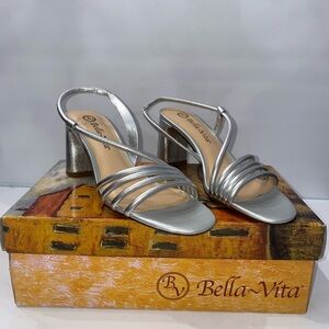 Bella Vita Women's Silver Leather Zariah Heeled Sandals New 7.5N