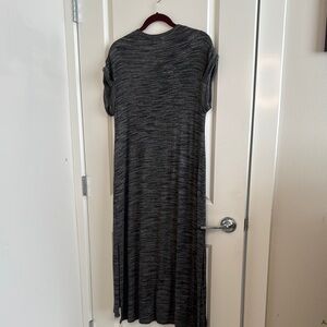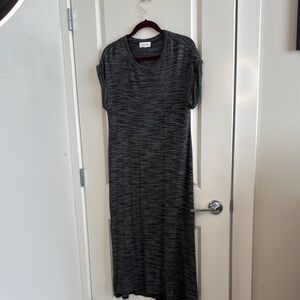 Stylish gray knit maxi dress. Perfect for casual outings. Has side slits no holes or rips and from non smoking home The crew neck and cuffed short sleeves make it a versatile piece for any occasion, whether you're going for a minimalist, bohemian, classic or city look. The pullover closure and side slits add a touch of elegance to this A-line shirt dress.