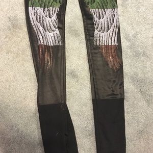 Black leggings. "Bella" on the back and angle wings in the Italian flag colors. One Size, but fits like an XS or S.