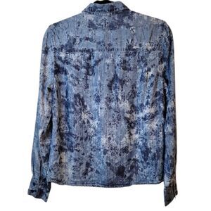 Bella Dahl Women's Blue Tie-Dye Chambray Button Down Shirt Size S