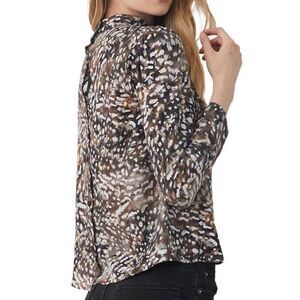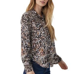Made In Los Angeles. Bella Dahl called it “One of our favorite button-downs.” This relaxed shirt is designed with two front pockets and an airy feel. Classic yet unique Brushed Feather pattern in beautiful browns and white. Women’s size medium.