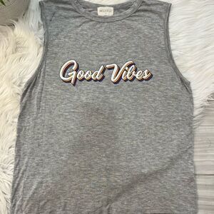 Super cute grey super soft Bella Ella “Good Vibes” tank top