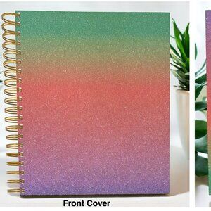 The 2026 Monthly Planner Set is accompanied by the matching Pentel EnerGel Gold Alloy Retractable Pen that brings a touch of sophistication to your workspace. The front and back cover is an Aurora Gradient Glitter cardstock with shimmering colors of teal, light amber, coral, magenta and violet finish. This sleek artistic finish transforms the planner into not just a functional tool but also a stylish accessory. A true blend of craftsmanship and creativity.