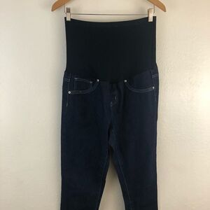 Bella Vida Blue Maternity Jeans size L. Pre-Owens. One Pocket is missing a few diamonds, see pictures for details.