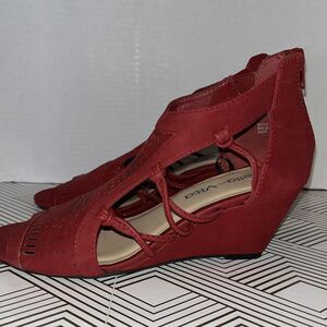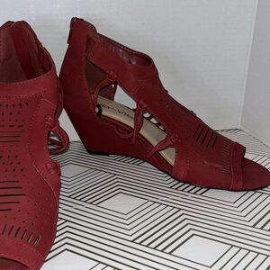 Bella Vita Boliver Sandals Size 7W Red Laser Cutout Wedge Heel Boho