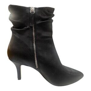 Bella~Vita Danielle 7.5M Black Leather Ankle Boots Pointed Toe Side Zipper Ruche
