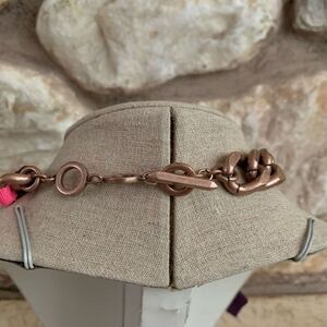 Bella bow necklace. Ribbon wrapped through chain. Adjustable length. Toggle closure