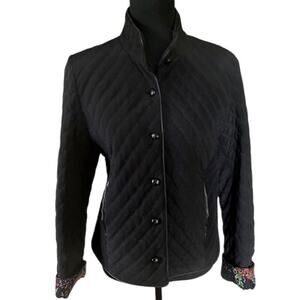 Bellagioseta Black Quilted Jacket Women’s Small Made in Italy Floral Lining