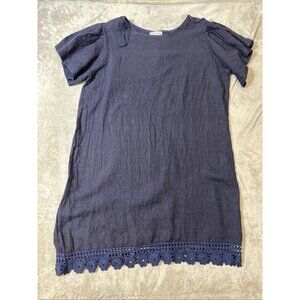 Bellambia 100% Linen Dress Size 2X Plus Short Sleeve Navy Blue Crochet Hem Boho. Condition is Pre-owned - Excellent. Shipped with USPS First Class.