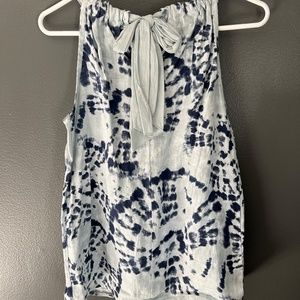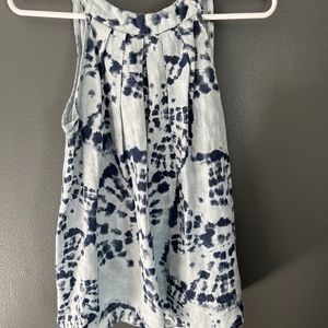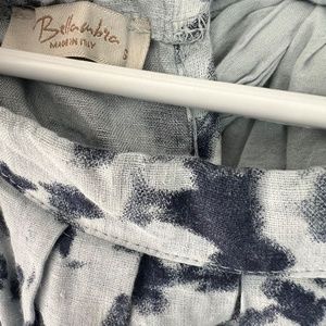 Bellambia Light Blue and Dark Blue Tie Dye Print Linen Halter Top Size S. Longer, draped fit. Never been worn!