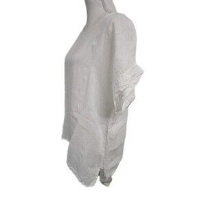 Bellambra 100 Linen Short Sleeve Blouse Top White Women’s Size L Made In Italy