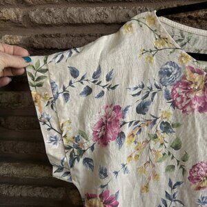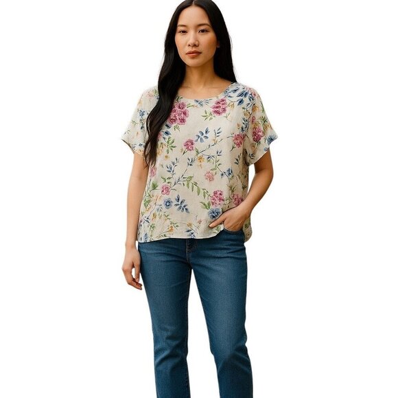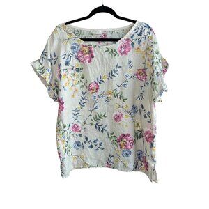 Bellambra Colorful Floral 100% Linen Short Sleeve Tunic Top Size Large