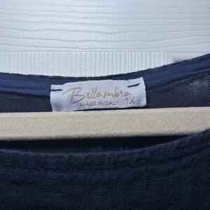 Bellambra Dress Womens 1X Blue Linen Crochet Hem Made In Italy Tunic Knee Length
