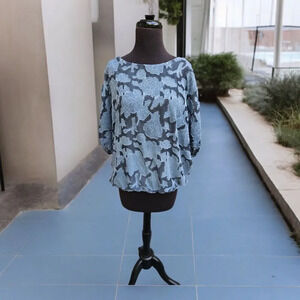 The blouse is embellished with intricate embroidery, adding a touch of sophistication to the blouse. It is available in size S and can be easily worn as a pullover. The blouse is perfect for travel, parties, or casual wear. The blouse is an oversized and slit design, making it comfortable and stylish. It is recommended to hand wash or dry clean, but avoid tumbling dry.