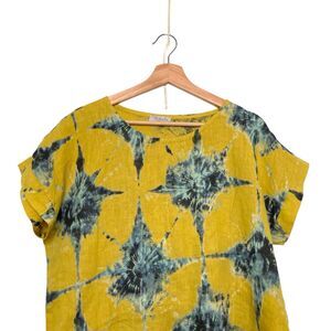 Bellambra Made in Italy Linen Tie Dye Blouse Yellow Blue Flowy Beachy Top Size S